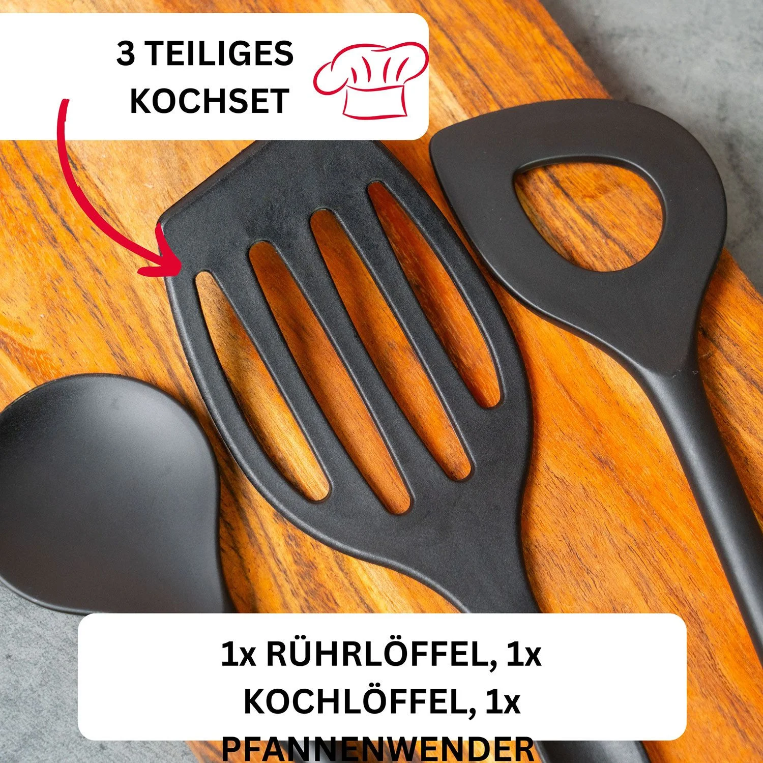 2 Kochlöffel und 1 Pfannenwender, hitzebeständig und spülmaschinengeeignet