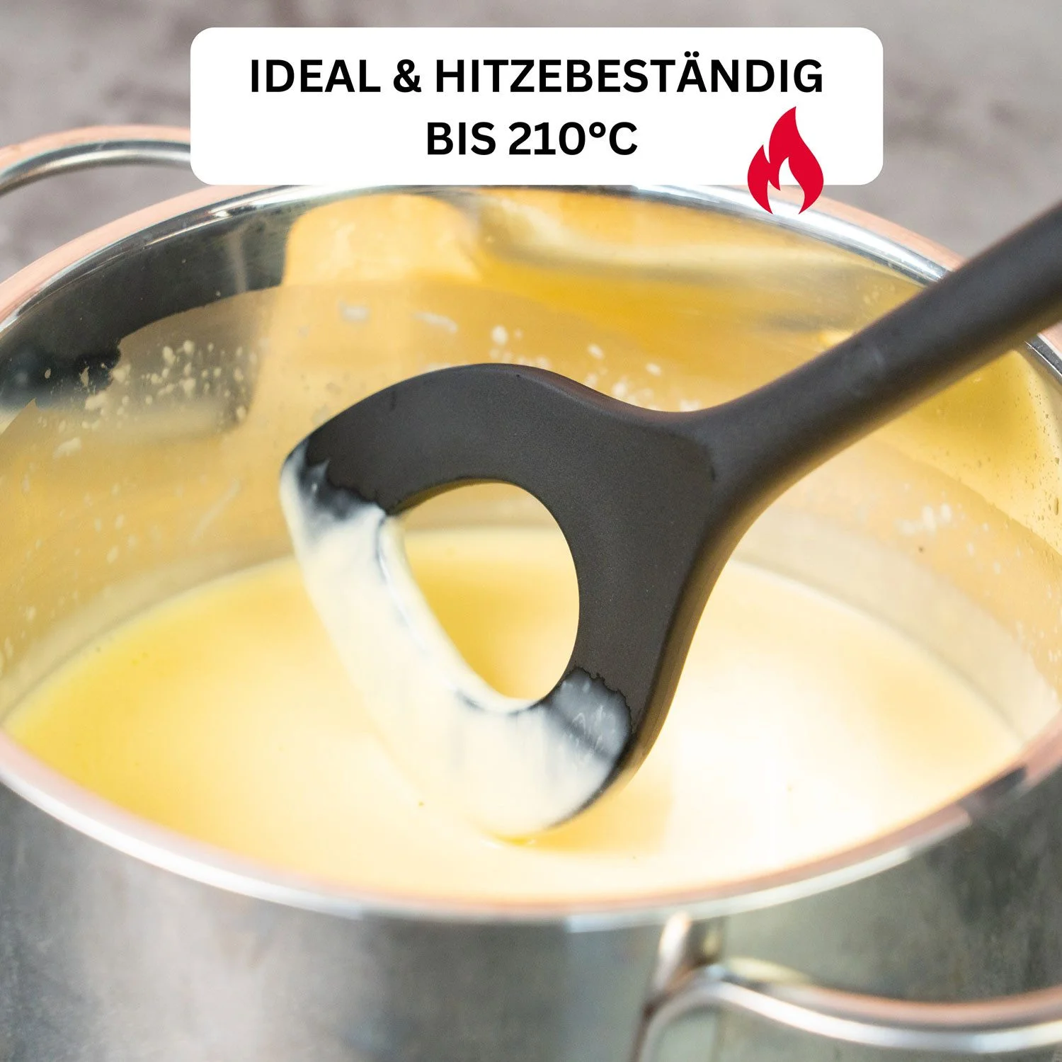 Alle Teile bestehen aus hochwertigem Polyamid (PA), sind hitzebeständig bis 210 °C, schonend für beschichtetes Kochgeschirr und können problemlos in der Spülmaschine gereinigt werden. Das Set ist langlebig, robust und "Made in Germany".