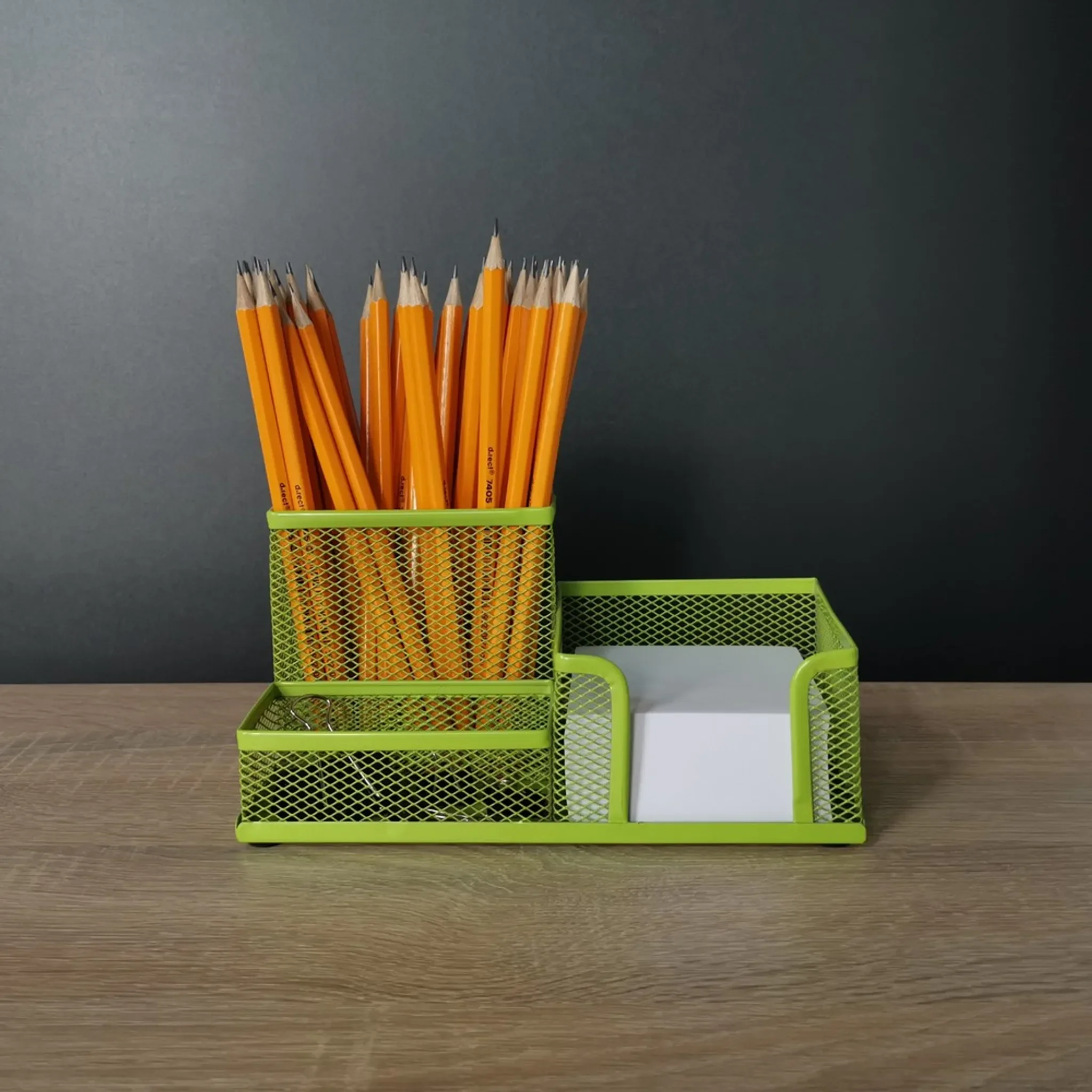Der Leviatan Lime Metall-Organizer bringt Struktur und Farbe an jeden Arbeitsplatz und eignet sich ideal für Stifte, Notizen und Büroaccessoires. Robust, kompakt und praktisch – ein Must-have für jeden Schreibtisch.