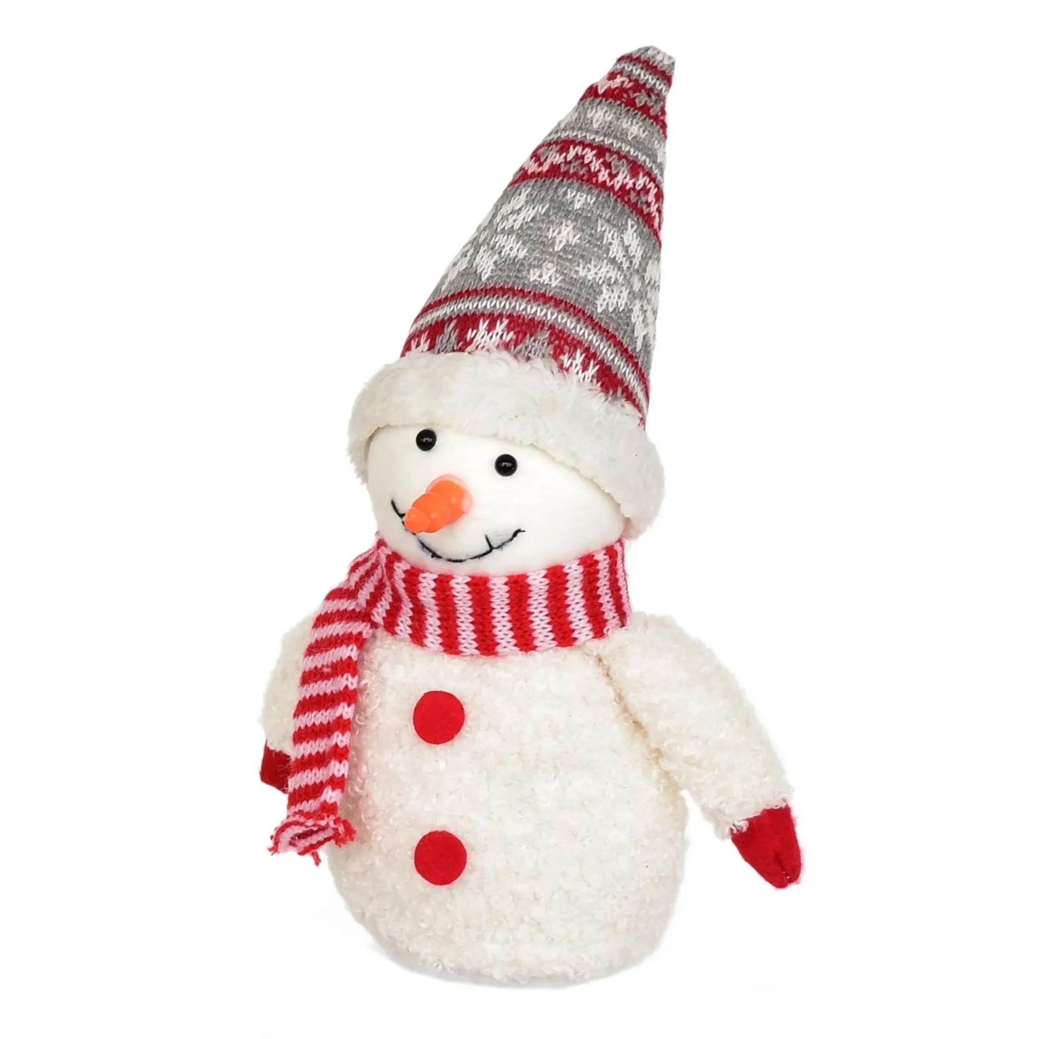 Der Schneemann ist in klassischem Weiß gehalten und trägt einen hübschen Schal. Gefertigt aus Fleece und Strick vermittelt er ein hochwertiges Aussehen und angenehmes Gefühl. Ideal als Dekoration im Wohnzimmer, auf dem Schreibtisch im Büro oder als winterliches Geschenk für Freunde und Familie.